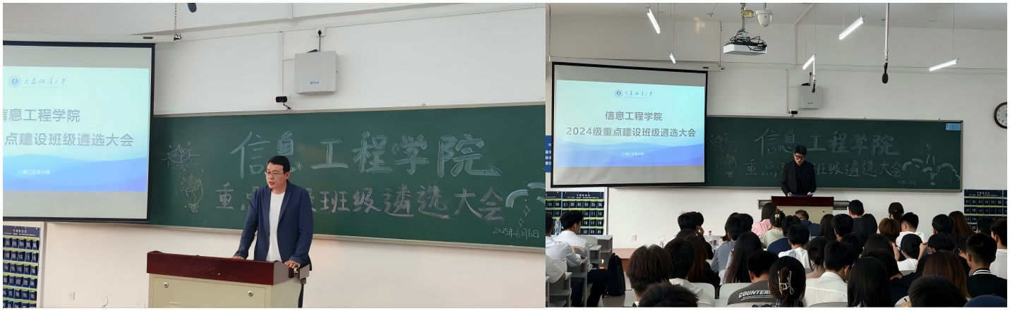 经评选,2024级重点建设班级为电子24-2班、信计24-1班、大数据24-1班。本次遴选大会不仅是一次班级建设成果的集中检阅,更吹响了深化学风建设的号角。学院将以重点建设班级为引擎,辐射带动全院班级互学互鉴,持续夯实育人根基,为培养具有扎实专业素养、高度自律精神与卓越协作能力的信息人才注入强劲动能。