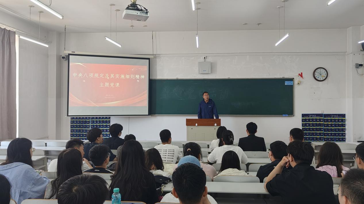 修恒哲围绕中央八项规定及其实施细则精神展开系统讲解。他强调,开展深入贯彻中央八项规定精神学习教育,是学习贯彻习近平新时代中国特色社会主义思想主题教育和党纪学习教育的续篇,是驰而不息加强作风建设、纵深推进全面从严治党的重要举措。他结合学院实际工作,指出全体党员要深刻认识到中央八项规定精神是对党员干部行为规范的刚性约束,全体党员必须严格对照中央八项规定精神,以优良党风引领学院高质量发展。
