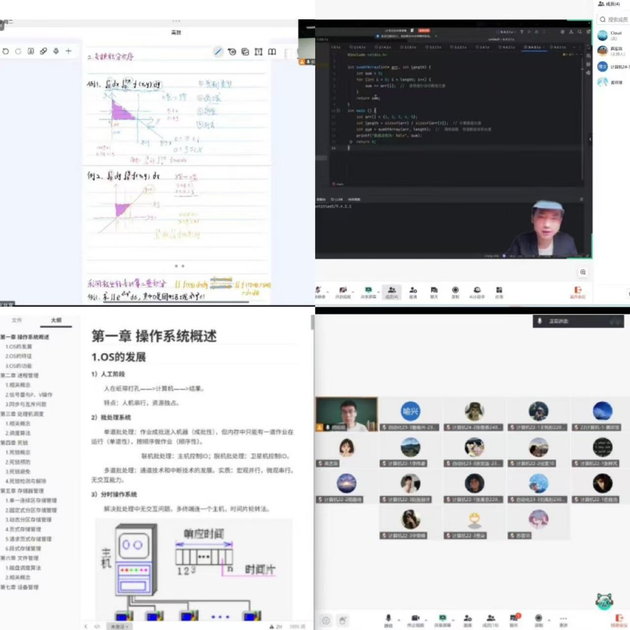 活动期间,由电子信息工程23-2班靳淑辉主讲数字电子技术基础、数据科学与大数据技术23-1班刘紫檀主讲概率论与数理统计、数据科学与大数据技术23-2班赵茗埼主讲高等数学、计算机科学与技术23-2班高宏淼主讲C语言程序设计、计算机科学与技术22-1班谢帅洋主讲操作系统。课程内容依据前期问卷调研结果,聚焦知识薄弱环节,通过典型例题精讲、编程实操演示及重难点剖析强化理解。授课中学生主动提问,主讲学生及时答疑,有效营造了浓厚的学习氛围。