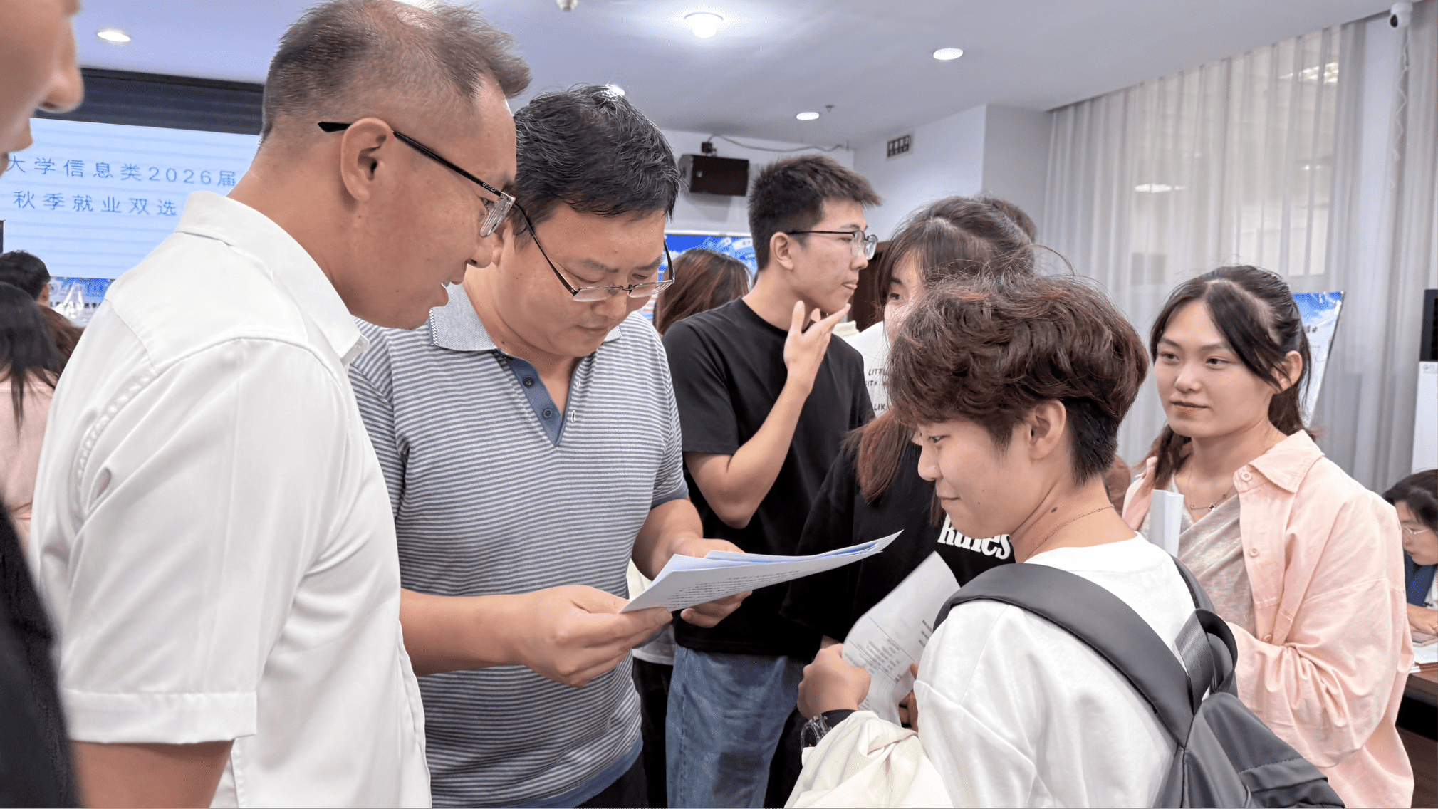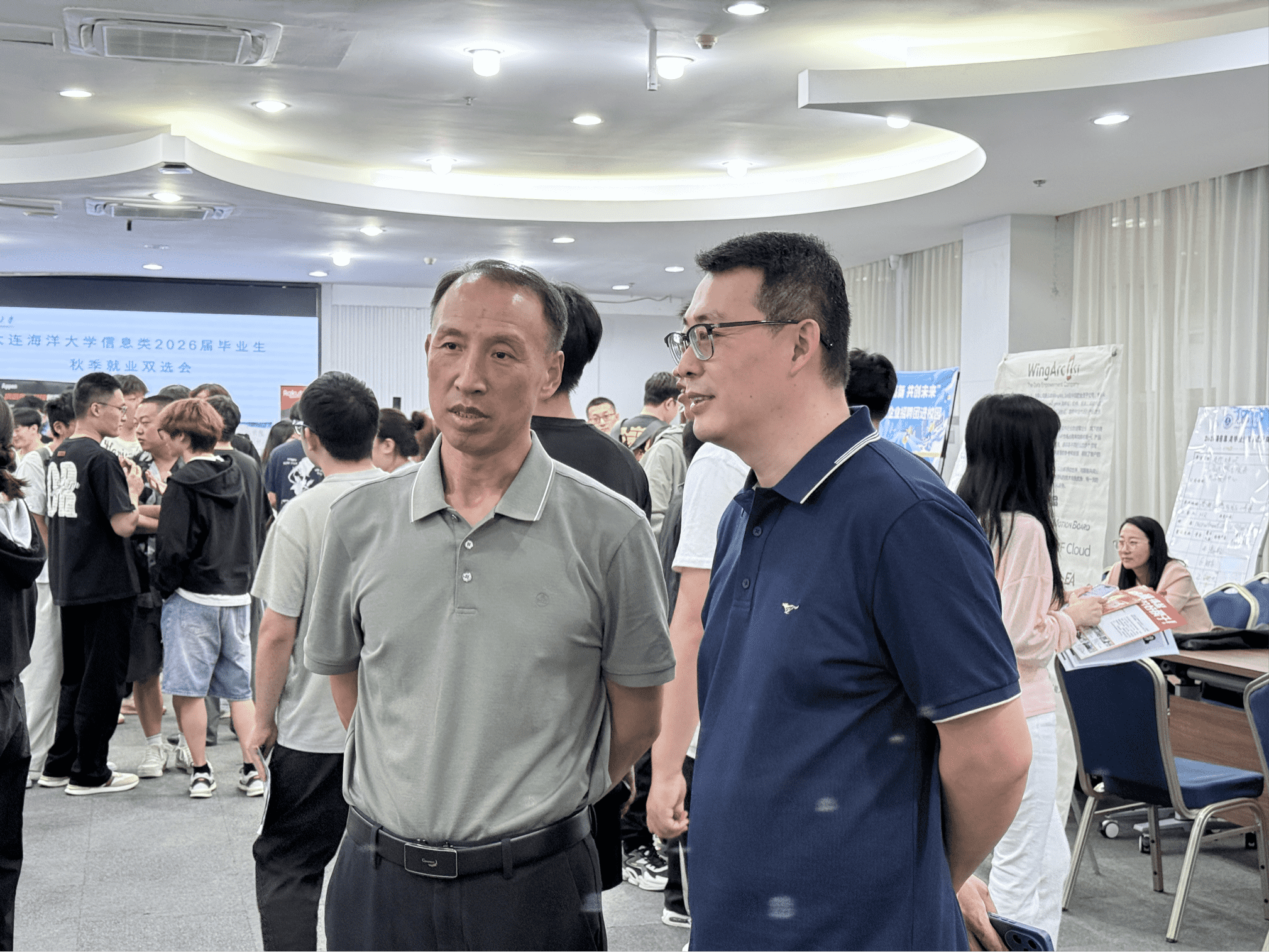 信息工程学院院长缪新颖、党委书记张永春、党委副书记于洋一行走访各企业展位,与多家用人单位代表进行交流,深入了解企业招聘需求与学生应聘情况,认真听取企业对学院毕业生人才培养的建议。各系主任、毕业班班导师与辅导员在现场开展就业指导,为学生提供简历修改、面试技巧等针对性帮助。学院领导与部分应聘学生亲切交流,勉励学生增强信心、充分发挥专业所长,积极争取心仪岗位。
