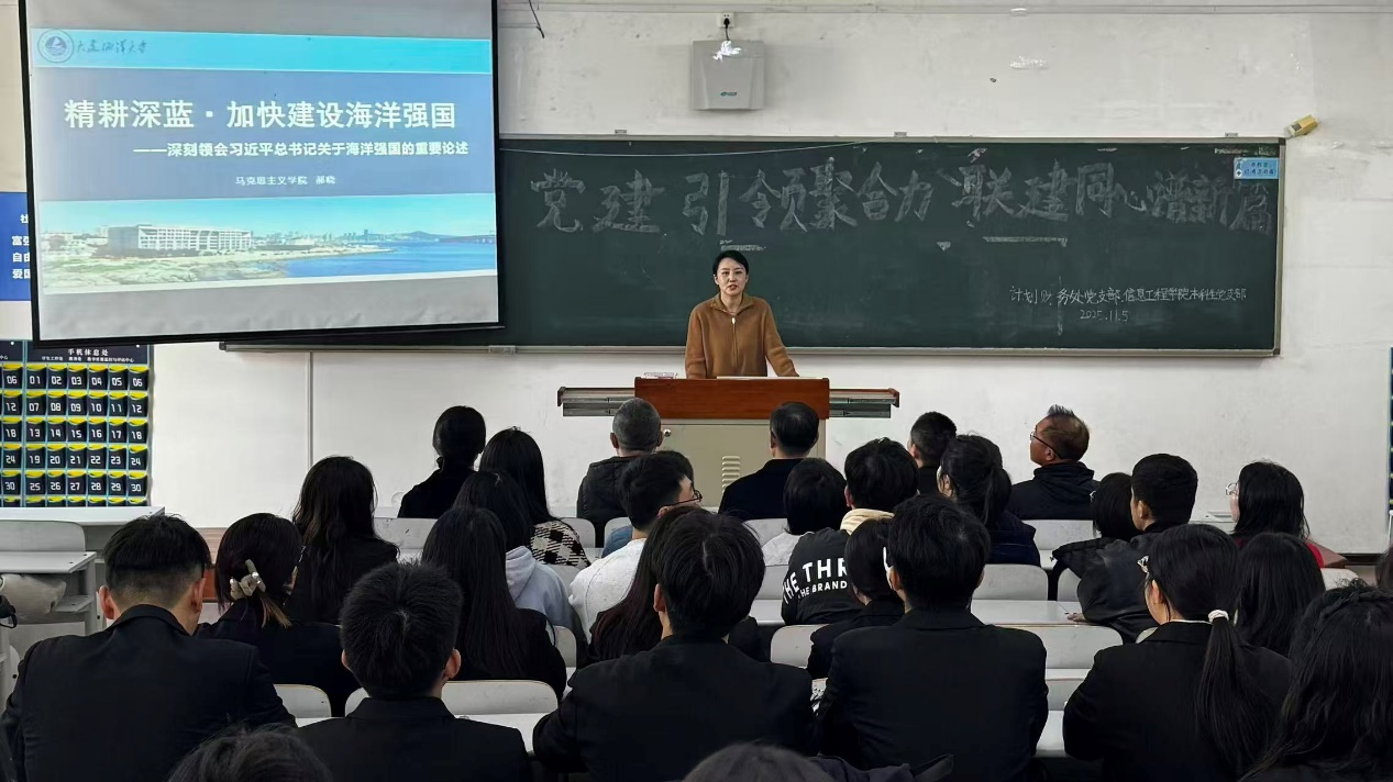 本次活动,由马克思主义学院郝晓老师主讲“精耕深蓝·加快建设海洋强国”主题党课,以海洋教育助推海洋强国建设进行了深刻论述。党员们认真聆听,详细记录,对“海洋强国”战略有了更清晰的认识,纷纷表示今后将立足本职岗位,积极投身海洋强国建设事业当中。下一步,双方将持续深化共建成果,为学校高质量发展贡献基层党组织的坚实力量。